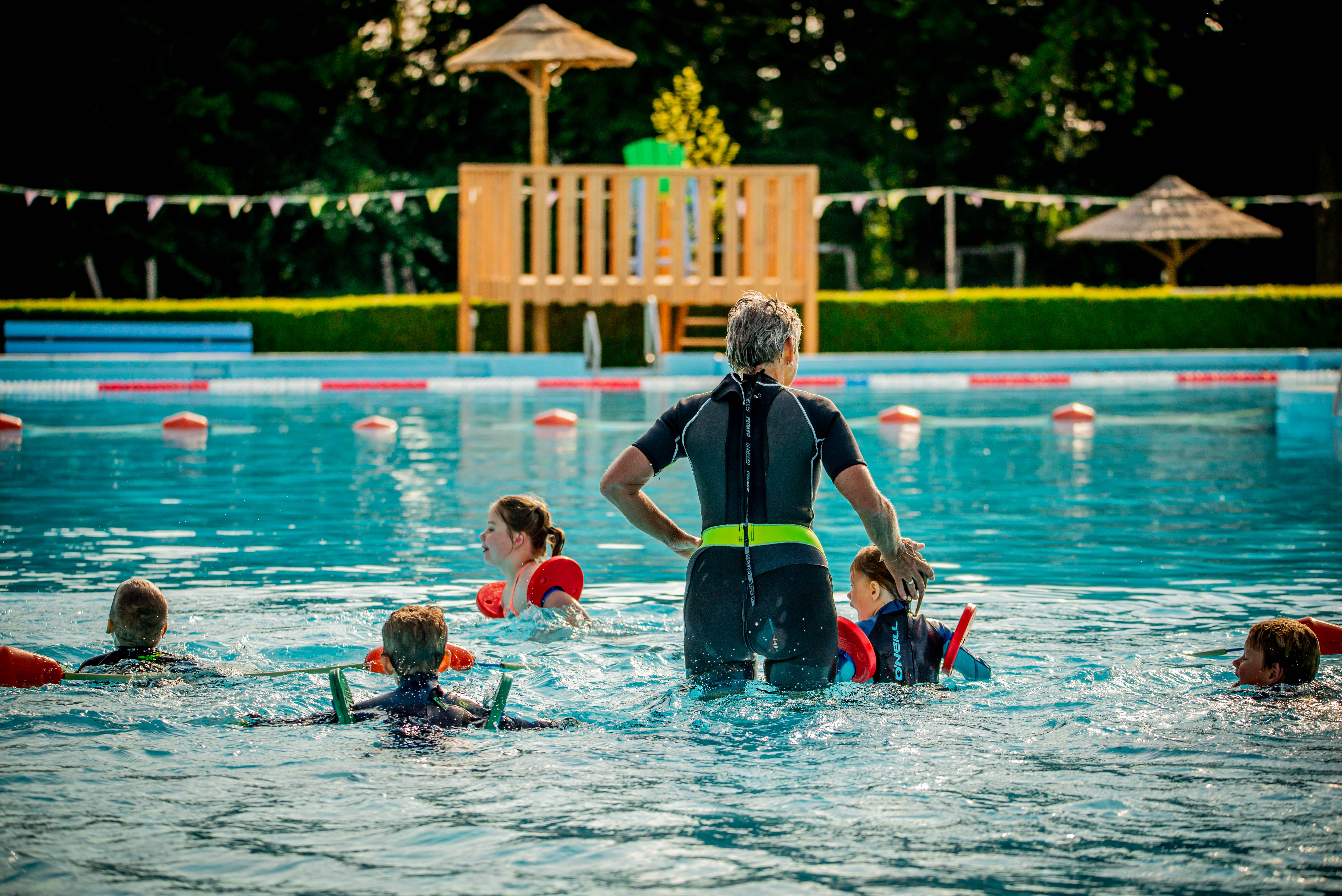 Onze buitenlocatie is overzichtelijk en kleinschalig, altijd onder toezicht van ervaren zwemonderwijzers.